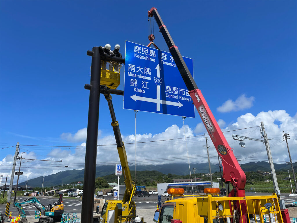 ・案内標識、警戒標識、規制標識、指示標識など道路利用者に必要な情報を提供する標識版の設置や補修をしています。
